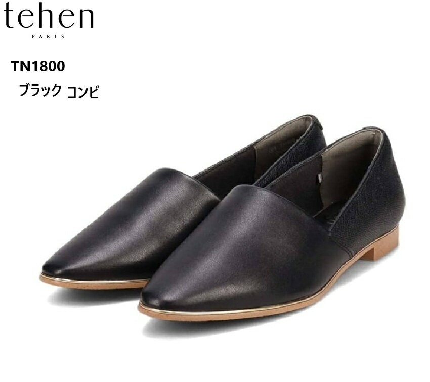 (テーン)tehen TN1800 レディス スリッポンフラットカジュアルパンプスシューズ ソフトなアッパー材使いの深めの甲デザインでしっかり支えてくれるので履きやすさも抜群 こばに使用したメタルラインもアクセント