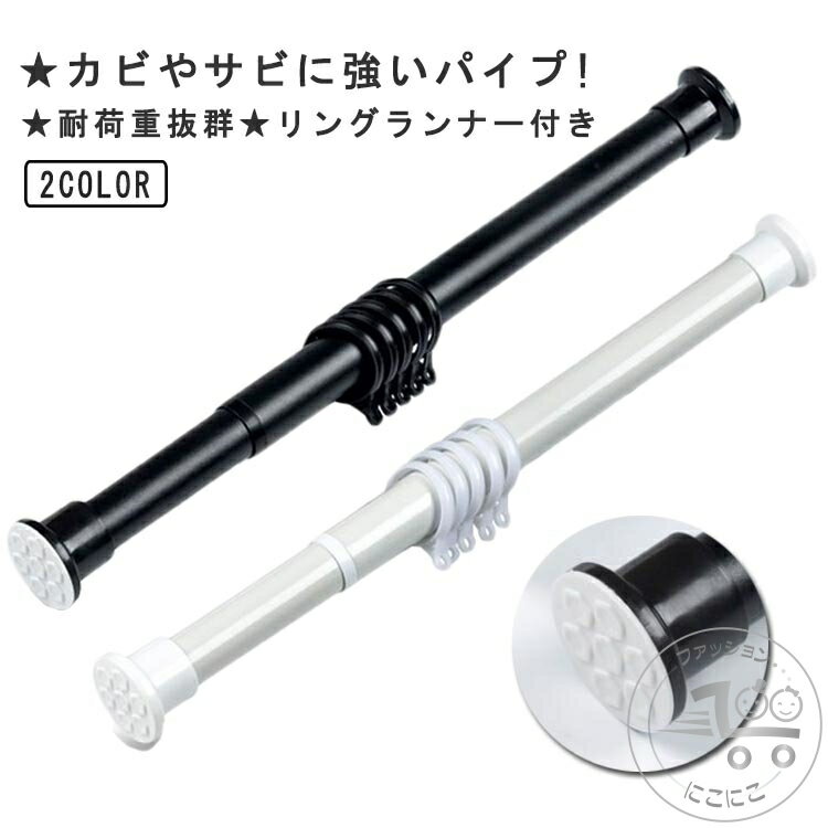 ★賃貸OK!!強力タイプのつっぱり棒ネジ止め不要、工事や穴あけ不要なので、壁や窓枠に穴やキズをつけることなくカーテンを取り付けることの出来る強力タイプの伸縮つっぱり棒です。 壁に傷が付きにくくなるよう滑り止めゴムパッドが付いています。★耐荷重抜群つっぱり棒は鉄製で、強い負荷に耐えられます。強度の強いバネを使用しているのでしっかりと固定することができます。★カビやサビに強いパイプ! 塗装を施した鉄製のパイプですので、錆やカビに強く、湿気の多い浴室でも安心して使えます。★リングランナー付きリングランナーがついているので、届いたらすぐにカーテンレールとして使える優れもの。 ★デッドスペースを有効活用つっぱり棒は自由に長さが調節でき、どこにでも設置でき、狭いスペースはもちろん、家の中のデッドスペースにも使えます。洗濯物を室内で干す、廊下でも部屋干し、ベランダの外に干す、つっぱり棒、クローゼットロッド、浴室用タオル掛け、室内用カーテンロッド、シャワーカーテンロッド、布団干し、物干し竿、キッチン用品収納。 サイズ 伸縮幅70-110cm 伸縮幅110-160cm 伸縮幅160-210cm サイズについての説明 伸縮幅70-110cm 伸縮幅110-160cm 伸縮幅160-210cm 素材 鉄 色 ホワイト ブラック 備考 ●サイズ詳細等の測り方はスタッフ間で統一、徹底はしておりますが、実寸は商品によって若干の誤差(1cm〜3cm )がある場合がございますので、予めご了承ください。 ●製造ロットにより、細部形状の違いや、同色でも色味に多少の誤差が生じます。 ●パッケージは改良のため予告なく仕様を変更する場合があります。 ▼商品の色は、撮影時の光や、お客様のモニターの色具合などにより、実際の商品と異なる場合がございます。あらかじめ、ご了承ください。 ▼生地の特性上、やや匂いが強く感じられるものもございます。数日のご使用や陰干しなどで気になる匂いはほとんど感じられなくなります。 ▼同じ商品でも生産時期により形やサイズ、カラーに多少の誤差が生じる場合もございます。 ▼他店舗でも在庫を共有して販売をしている為、受注後欠品となる場合もございます。予め、ご了承お願い申し上げます。 ▼出荷前に全て検品を行っておりますが、万が一商品に不具合があった場合は、お問い合わせフォームまたはメールよりご連絡頂けます様お願い申し上げます。速やかに対応致しますのでご安心ください。
