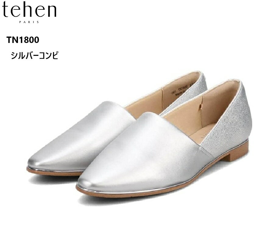 (テーン)TN1800 tehen レディス スリッポンフラットカジュアルパンプスシューズ ソフトなアッパー材使いの深めの甲デザインでしっかり支えてくれるので履きやすさも抜群 こばに使用したメタルラインもアクセント