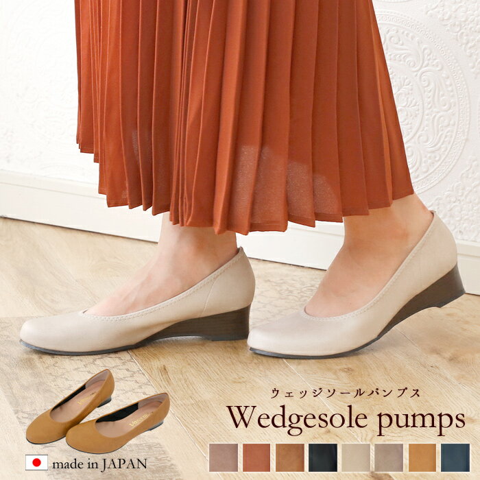 パンプス 日本製 痛くない 幅広 柔らかい ストレッチ ヒール ウェッジソール 太ヒール ラウンドトゥ 歩きやすい 履きやすい ウェッジパンプス 外反母趾対策 靴 シューズ おしゃれ 旅行 通勤 通学 足が痛くならないウェッジパンプス♪(kh-5516) 【翌日配送対応】