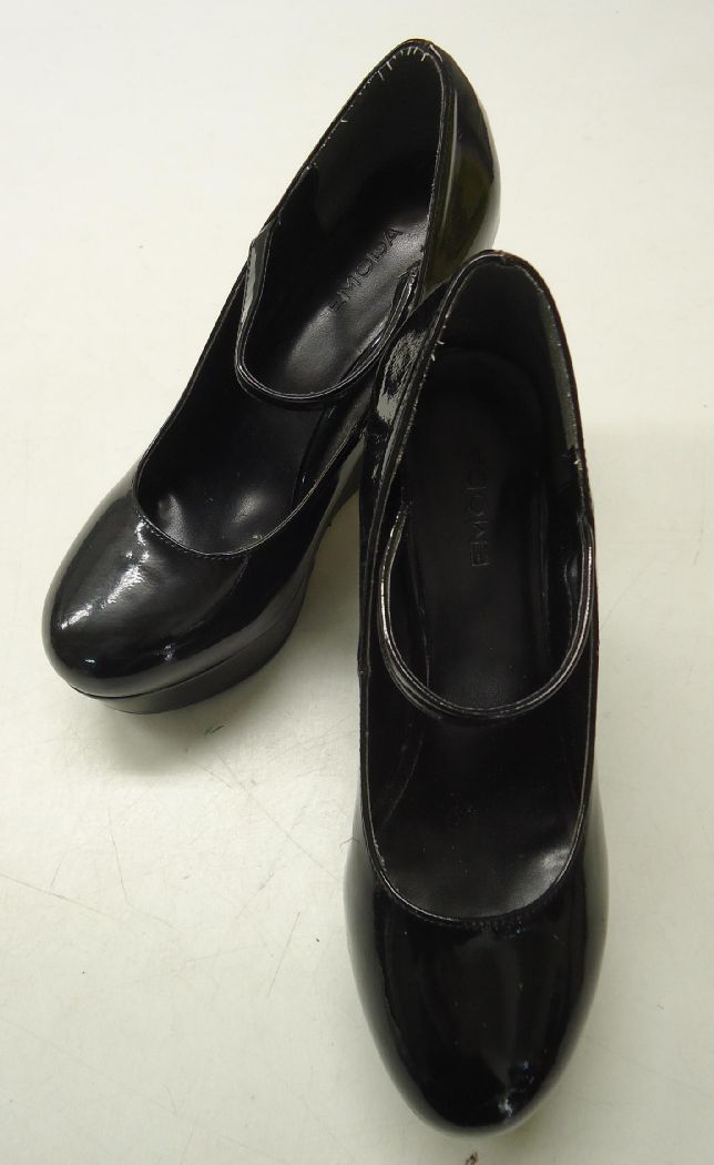 【中古】【EMODA/エモダ】プラットフォーム ハイヒールパンプス★25cm位/ヒール高:約12cm/★エナメルブラック★厚ストーム カジュアルパンプス★