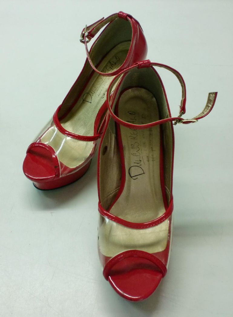 【中古】【あす楽可】【DULCIS REGALO】厚ストーム ハイヒール アンクルストラップパンプス★M(23cm程度)/ヒール高:約12cm★エナメルレッド×クリア★厚ストーム&ハイヒールで、スタイルアップも♪