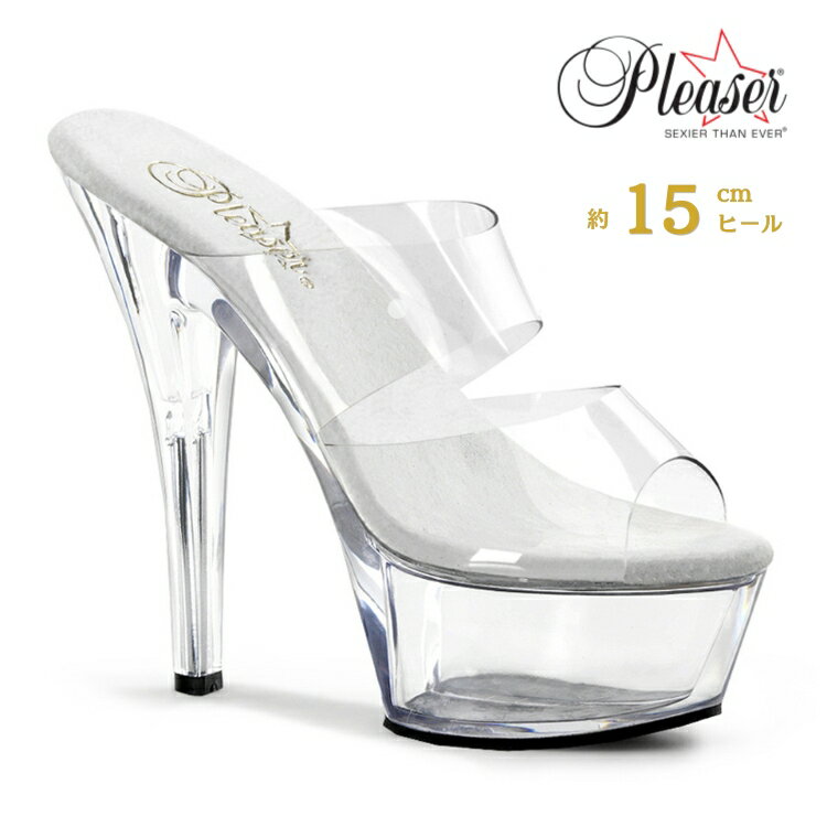 ミュール サンダル 厚底 Pleaser プリーザー 15cm ヒール 透明 クリア クリアヒール ハイヒール ピンヒール オープントゥ ポールダンス ステージ 大きいサイズ パーティー コスプレ 衣装 靴 レディース メンズ KISS-202 KISS202/C/M 即納 取寄