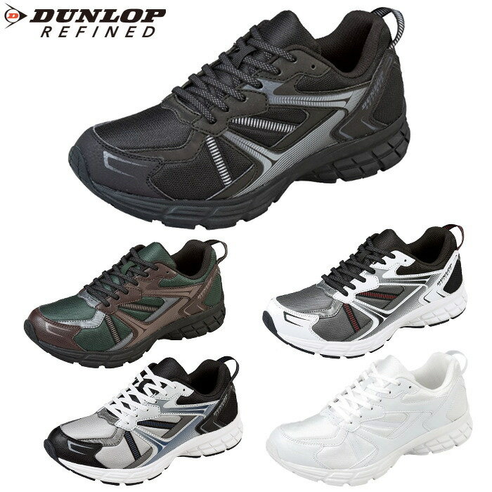 |  ランニングシューズ ダンロップ 靴 スニーカー ランニング メンズ リファインド 黒 ブラック ホワイト シルバー モスグリーン 幅広 4E 軽量 撥水 DUNLOP DM2011 大きいサイズ対応 ワイド ひも靴 スポーツ ジョギング 通勤 通学 ウォーキング
