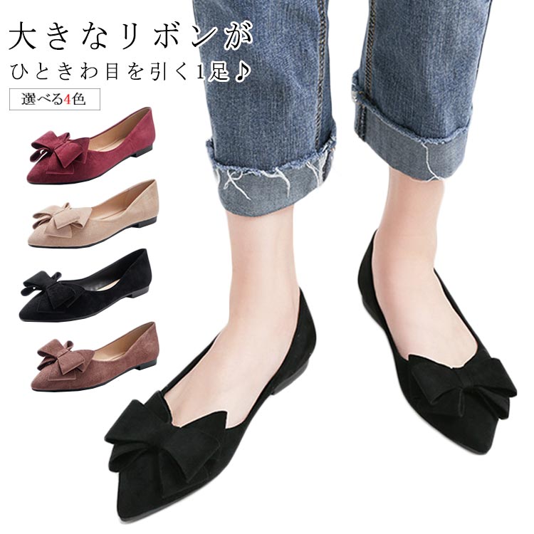 リボンパンプス フラットパンプス バレエシューズ パンプス レディース 歩きやすい ポインテッドトゥ ローヒール 走れる 無地 おしゃれ カジュアル フラットシューズ ローヒールパンプス 大きいサイズ 大人 女性 シンプル 可愛い 立ち仕事 通勤 ギフト プレゼント 送料無料