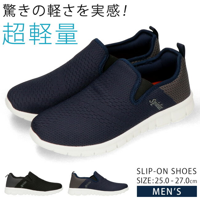 【期間限定クーポンあり】スリッポン メンズ 軽量 歩きやすい 疲れない 履きやすい 蒸れにくい メッシュ シンプル おしゃれ 黒 ローカット JMS-1756 ウォーキング シューズ 運動靴 スニーカー 靴【2402】