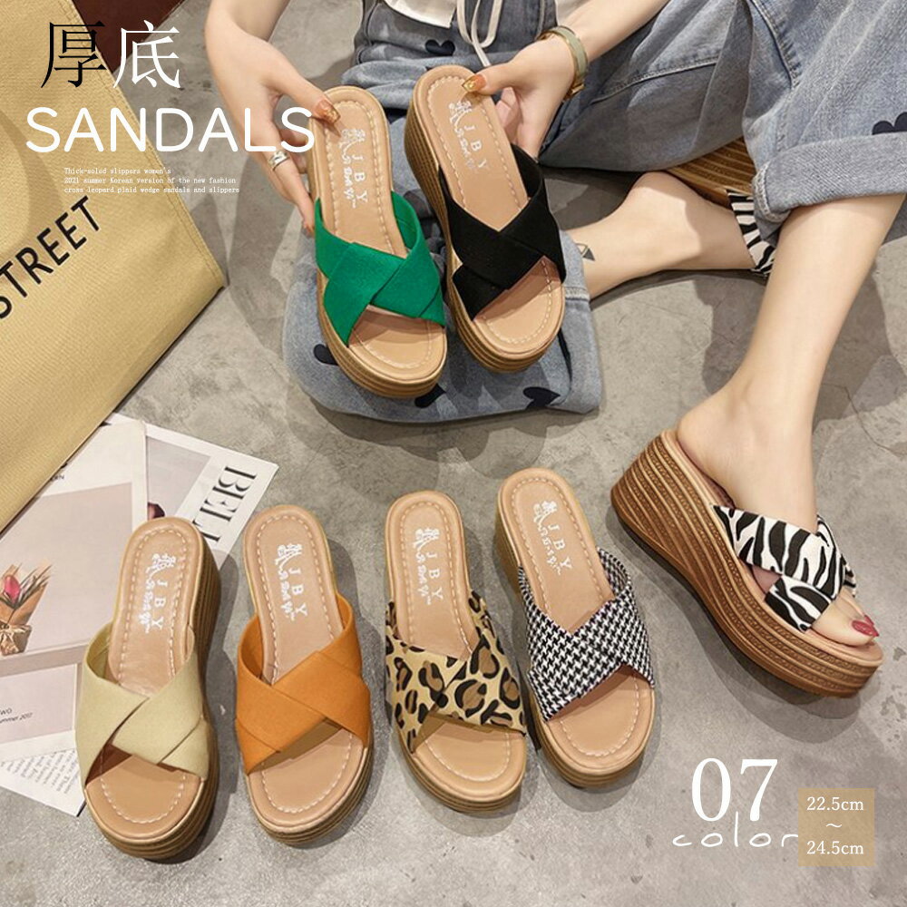 ■商品の特徴レディース サマークロスサンダル 歩きやすい ウェッジヒールサンダル 痛くない コンフォートサンダル太めのクロスベルトが大人っぽく、コルク風ソールで春夏らしく爽やかな雰囲気の厚底サンダル 安定感抜群のウエッジソールで、甲もしっかりとカバーしてくれるのでホールド感があり履きやすく歩きやすい シンプルなので幅広いコーデに合わせやすくヘビロテ確実の一押しアイテム■詳細説明甲素材:合成繊維底素材:合成底カラー:ブラック/ベージュ/グリーン/オレンジ/ヒョウ柄/シマウマ柄/チドリ柄 サイズ:22.5cm(35)/23.0cm(36)/23.5cm(37)/24.0cm(38)/24.5cm(39) (カッコ内は靴底表記となります) [22.5]長さ:約22.5cm 幅:約8.1cm ヒール:約7cm [23.0]長さ:約23.0cm 幅:約8.2cm ヒール:約7cm [23.5]長さ:約23.5cm 幅:約8.3cm ヒール:約7cm [24.0]長さ:約24.0cm 幅:約8.4cm ヒール:約7cm [24.5]長さ:約24.5cm 幅:約8.5cm ヒール:約7cm 重さ(両足):約381g-436g 生産国:中国■その他説明※すべて平置きサイズです(採寸方法違いより、多少の誤差がございますので、ご了承ください)。 ※商品は縫製上の細かいほつれ、汚れ、接着剤が残り、素材特有の臭いや接着剤等の臭いが残っている場合がございます。ご了承ください。 ※海外輸入品のため、商品の細部仕様は多少異なる場合がございます。予めご了承の上、ご注文お願い致します。