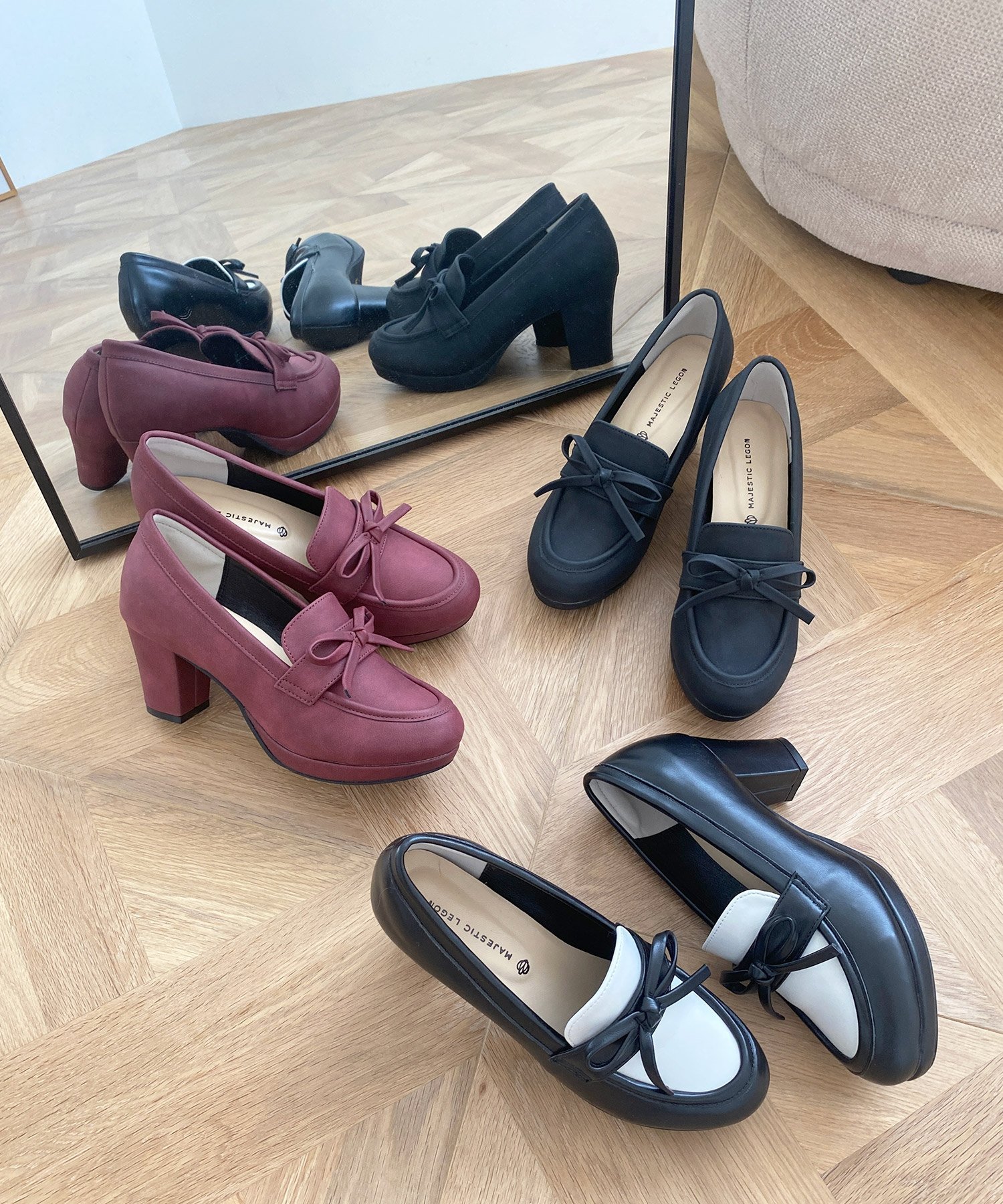 【SALE/30%OFF】MAJESTIC LEGON リボンヒールローファー マジェスティックレゴン シューズ・靴 ローファー ワインレッド ブラック【送料無料】