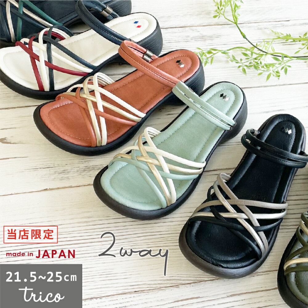 【最大4,000円OFFクーポン出現!】サンダル レディース ウェッジソール trico トリコ MTRC11A4 編み込み 2way ストラップ 当店オリジナル | コンフォート ミュール つっかけ 5cmヒール おしゃれ 歩きやすい 旅行 日本製