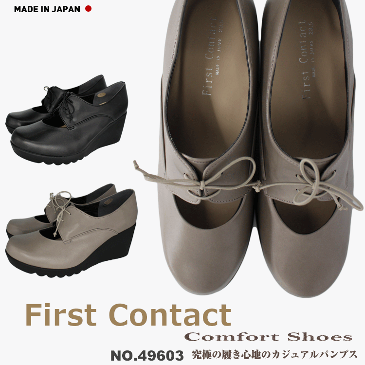 FIRST CONTACT ファーストコンタクト 日本製 抗菌 消臭 ウェッジソール パンプス コンフォートパンプス 黒 痛くない 柔らかい 脱げない おしゃれ 履きやすい 歩きやすい 美脚 ブラック 49603 靴 外反母趾 走れる レディース 走れるパンプス