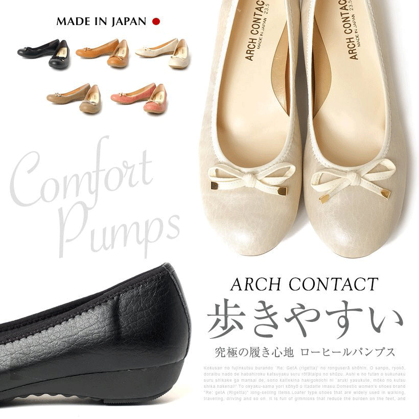 ARCH CONTACT アーチコンタクト パンプス 痛くない プレーン ベーシック 脱げない 日本製 バレエシューズ フラットシューズ 靴 レディース シンプル 歩きやすい ローヒール コンフォートシューズ 低反発 ペタンコ靴 25.5cm ヒール 2.5cm 45085 靴 外反母趾