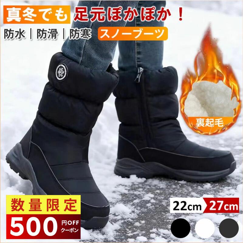 【BLACK FRIDAY限定♪500円OFFクーポン】スノーブーツ 防水 防滑 防寒ブーツ 裏起毛 羊毛入り 保温 ボアシューズ 雪道ブーツ ジッパー付き 履きやすい 撥水ブーツ レディース メンズ スノーシューズ 冬靴 滑り止め おしゃれ 男女兼用 アウトドア対応