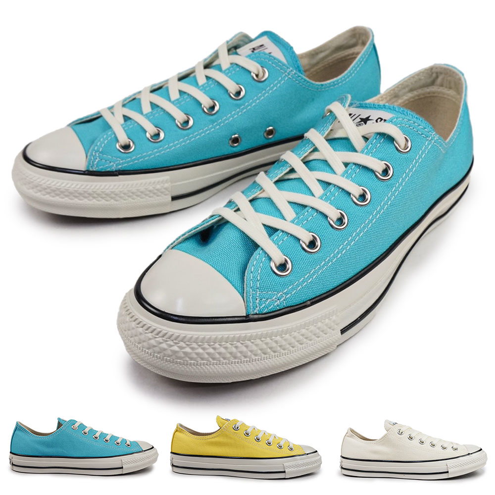 メーカー希望小売価格はメーカーサイトに基づいて掲載しています オールスター エイジドのカラーアレンジモデル。洗い加工を施したキャンバス素材をアッパーに採用。カラーは爽やかでレトロ感のある、3カラー展開。・洗い加工を施したアッパー・艶出し加工を施した生成りテープ・6ミリ幅のコットンシューレース・光沢の強いハトメ幅、サイズ感・・・オールスターは男性用(USAサイズ6以上)はやや小さめ女性用(USAサイズ5.5以下)は標準的大きさです。ご注意・・・・・・オールスターにはUSA5.5とUSA6の2種類の24.5cmがありますがUSA6の24.5の方がやや大きめです。※シューホール(ヒモを通す穴)の数はサイズにより変動しますので、お届けする商品が写真と異なる場合があります。※汚れ加工により、シューレースを通す際に手が汚れる場合がございます。 また、シューレースから生地に色移りしますが不良ではございません。素材: アッパー:キャンバス アウトソール:ラバー原産国:インドネシアローカット スニーカー メンズスニーカー レディーススニーカー クラシカル タウンスニーカー ターコイズ イエロー ホワイト31314940_31314941_31314942CONVERSE ALL STAR AGED CL OX #コンバース 新着#コンバース スニーカー#コンバース オールスター#コンバース メンズ#コンバース レディース#ローカット スニーカー 26.0cm(USA7.5)でちょうど良いです。 25.5cm(USA7)でちょうど良いです。 幅に余裕が欲しいので27.0cm(USA8.5)を選びます。 23.5cmでちょうど良いです。 24.5cmでちょうど良いです。 24.0cmでちょうど良いです。 23.0cmでちょうど良いです。Color Variation 1SE561(ターコイズ) 1SE562(バターイエロー) 1SE563(アッシュホワイト)