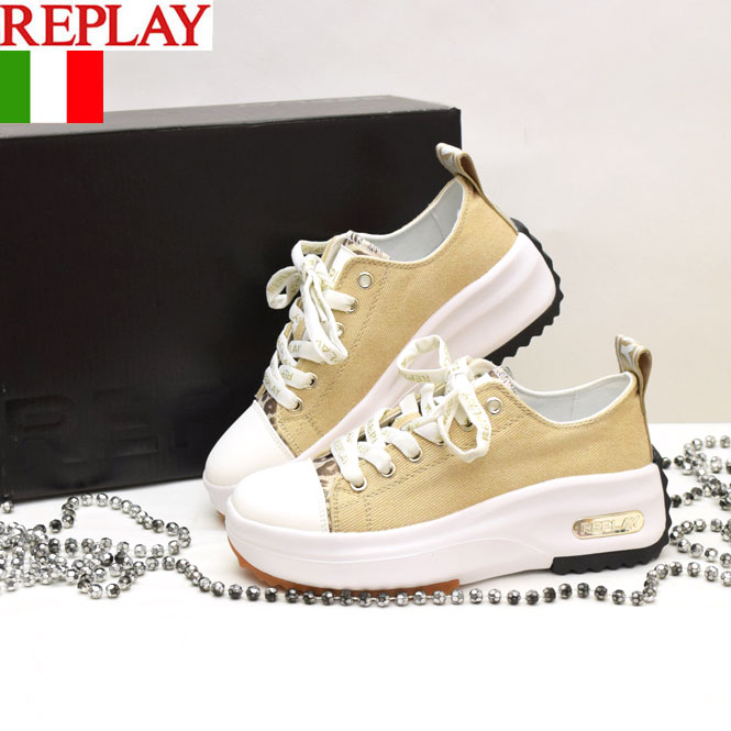 本日【大安】ブラックフライデー連動♪【MAX47倍×限定クーポン対象】ラスト一点!★限定値下げ♪【SALE★セール】【30%OFF】 ショップ袋おまけ付◇【REPLAY リプレイ】キャンバス アニマル柄スニーカー AQUA2 LOW【送料無料】正規品返品不可