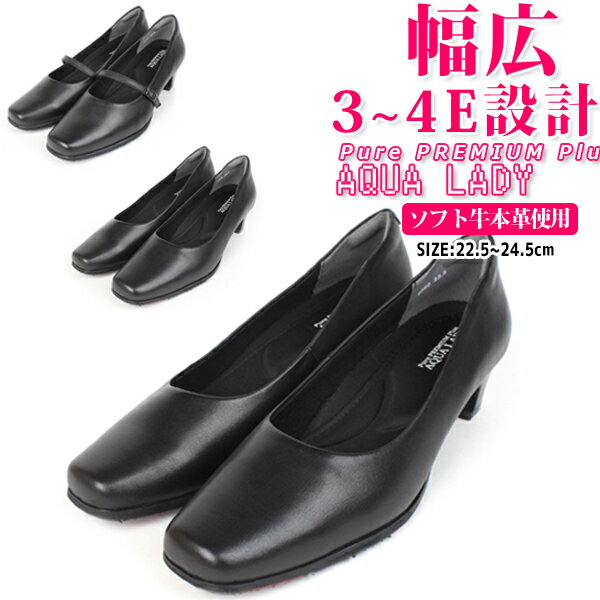 ワンランク上の足元を演出する本革プレミアムパンプス 幅広いシーンに使える大人女子のマストアイテム フォーマル 通勤 リクルート プレーン ベルト 卒業 卒園 冠婚葬祭 ブラック 3E/4E幅広設計 送料無料 AQUA LADY Pure PREMIUM Plus アクアレディプレミアムプラス