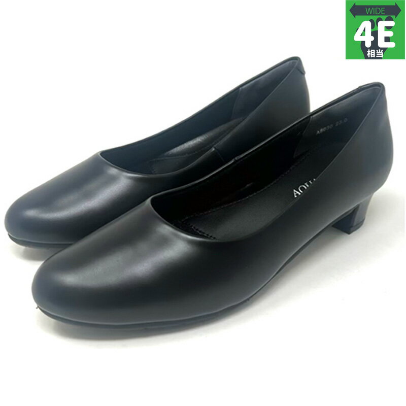 4E 幅広 ワイド アクアレディ レディース パンプス 靴 シューズ オフィス ビジネス リクルート 仕事 就活 結婚式 葬式 冠婚葬祭 フォーマル ブラック 黒 送料無料 AQUA LADY 8030