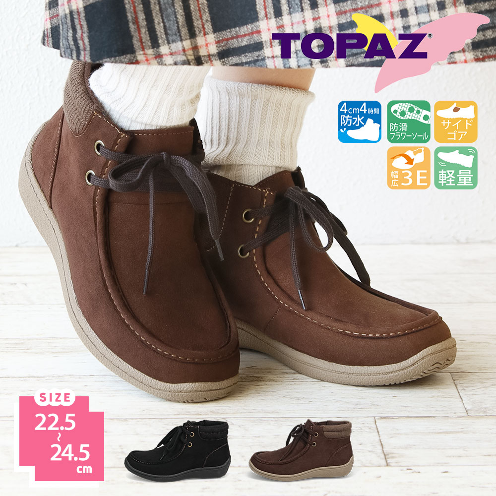 トパーズ ショートブーツ レディース 歩きやすい 防水 防寒 防滑 軽量 幅広 3e スエード ブーティ ローヒール 防寒 軽い 暖かい あったか 裏起毛 レースアップ スノーシューズ レインブーツ レインシューズ 履きやすい ブーツ 黒 ブラック 2302