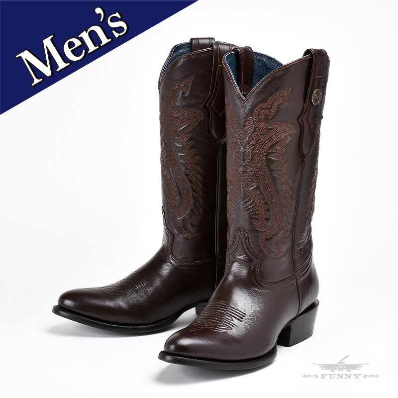 【FUNNY公式ストア】 BOTAS JACA メンズ カウボーイブーツ 【AZTECA Venado Ame Caf?】 ウエスタンブーツ ウエスタン カントリーダンス カウボーイ ロングブーツ 男性用 メキシコ製 牛革 ブラウン 茶色