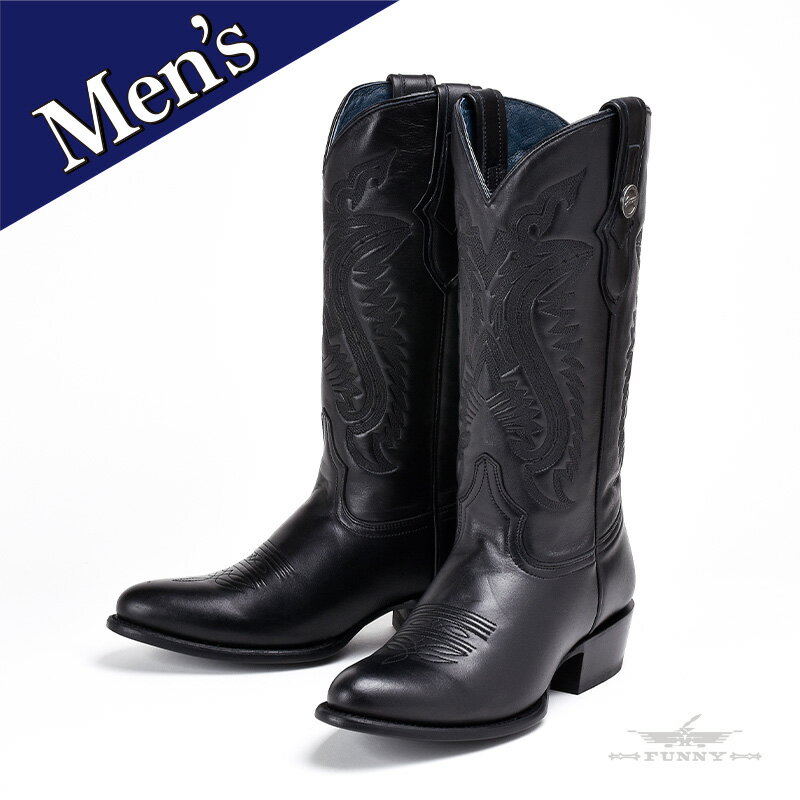 【FUNNY公式ストア】 BOTAS JACA メンズ カウボーイブーツ 【Azteca Reno Negro】 ウエスタンブーツ ウエスタン カントリーダンス カウボーイ ロングブーツ 男性用 メキシコ製 牛革 ブラック 黒