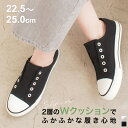 【在庫限り★特別価格】スニーカー スリッポン レディース Wクッションインソール 紐なし おしゃれ 歩きやすい バーゲン ローカット シューズ 白 黒 ブラック ホワイト カジュアル キャンバス 25.0 快適 履きやすい HoloPono ホロポノ プレプラ