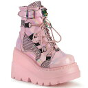 demonia デモニア 厚底 ブーツ ピンク ショートブーツ 13cm ヒール ベビーピンク ホログラム レースアップ ジッパー 小さいサイズ 大きいサイズ ライブ スニーカー 厚底靴 ロック パンク ゴスロリ ファッション V系 コスプレ レディース メンズ CAMEL-203 CAM203/BPHG 取寄