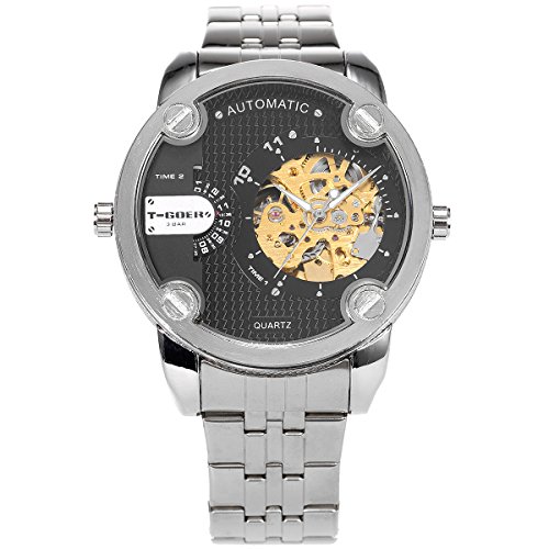 【中古】【未使用・未開封品】SIBOSUN メンズ アーミー スポーツウォッチ デュアルゾーン ダブルムーブメント 自動機械 + クォーツ ビッグダイヤル スチールストリップ