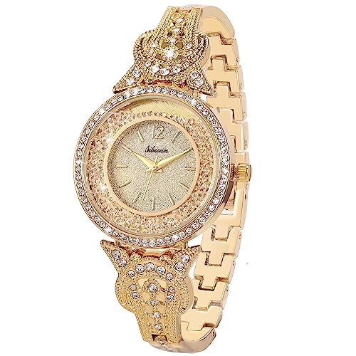 【中古】【未使用・未開封品】SIBOSUN レディース 腕時計 クォーツ 高級ステンレススチールバンド ブレスレット クリスタル アナログ 21.Gold, JXQ222