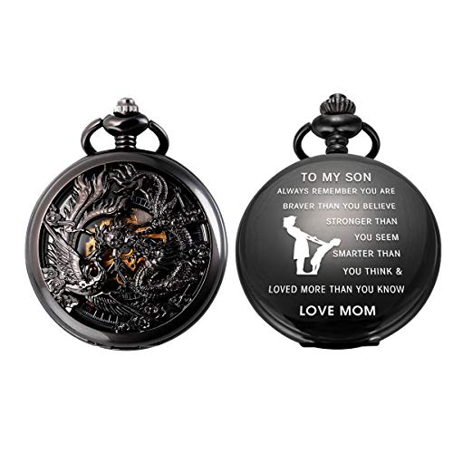 【中古】【未使用・未開封品】SIBOSUN 懐中時計 パーソナライズ 刻印 機械式 MOM to 息子 誕生日 卒業 ドラゴン フェニックス, 121 ブラック - To My Dad, Love Forever