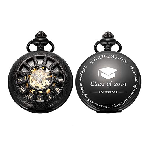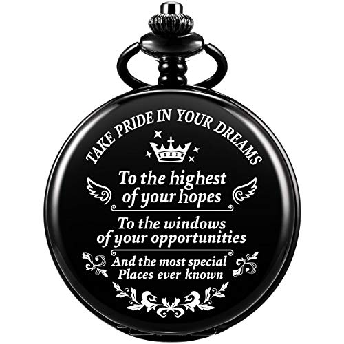 【中古】【未使用・未開封品】SIBOSUN 卒業式 男性用 ポケットウォッチ 刻印入り 夢の中に誇りを込めて 大学高校卒業 息子 娘 彼 彼女 クラスメート向け 1ブラック