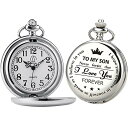 【中古】【未使用・未開封品】SIBOSUN 懐中時計 メンズ チェーンフォブ クォーツ 彫刻 to My Son I Love You Mom Dad Christmas シルバー