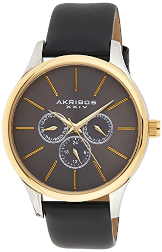 【中古】【未使用・未開封品】Akribos XXIV Men 's ak870ygb Round Silver Dial Three Hand Quartz Two Tone Strap Watch
