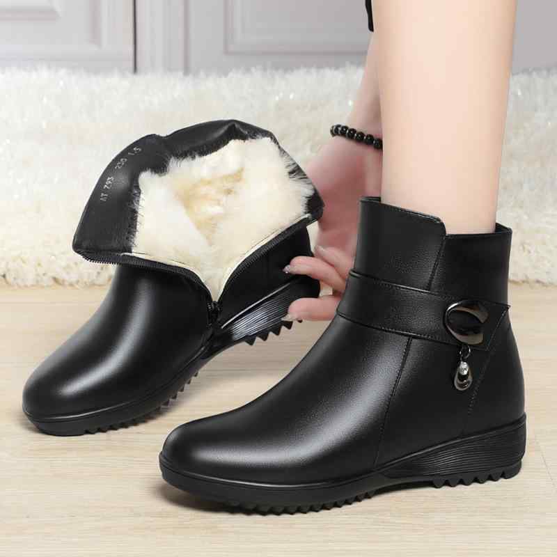 靴 レディース 婦人靴 ミドルブーツ ショートブーツ 防寒 あったか 暖か ウール 羊毛 スエード調 スウェード調 フラットヒール ローヒール 歩きやすい 履きやすい 滑り止め ラウンドトゥ 黒 ブラック 30代 40代 50代 60代 秋冬
