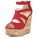 【送料無料】 アレグラ ケー レディース サンダル シューズ Women's Platform Peep Toe Cutout Caged Cork Wedge Heel Sandals Red
