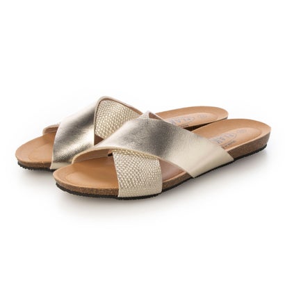 プラクトン PLAKTON クロスフラットサンダル (CHAMPAGNE型押し・メタリック)