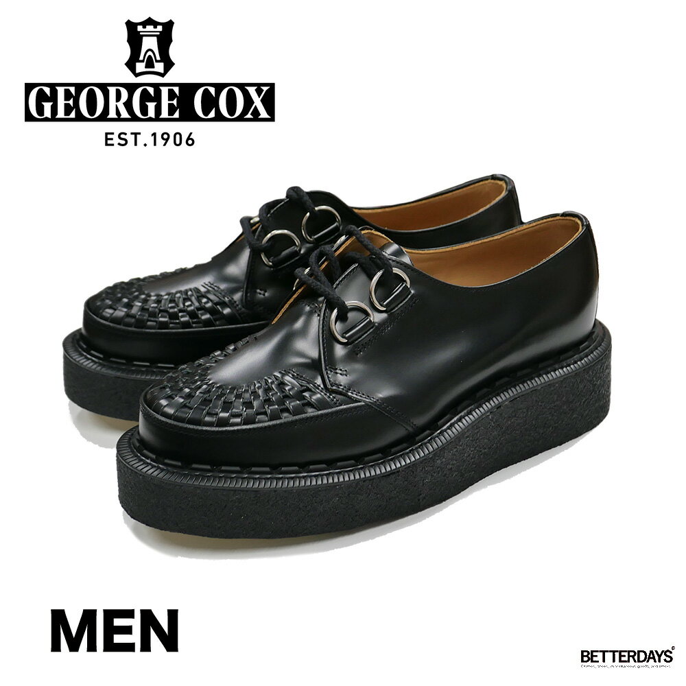 正規取扱店 GEORGE COX (ジョージコックス) INTERLACE HATTON ラバーソール レザーシューズ 040 BLACK