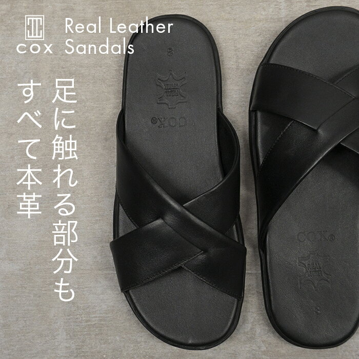 【返品交換可】本革 レザーサンダル ユニセックス メンズ レディース 全4色 ブラック ブラウン タン ネイビー COX コックス