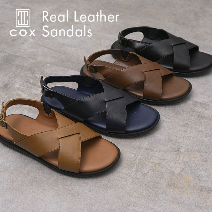 【返品交換可】本革 レザーサンダル バックストラップ メンズ 全4色 ブラック ブラウン タン ネイビー COX コックス