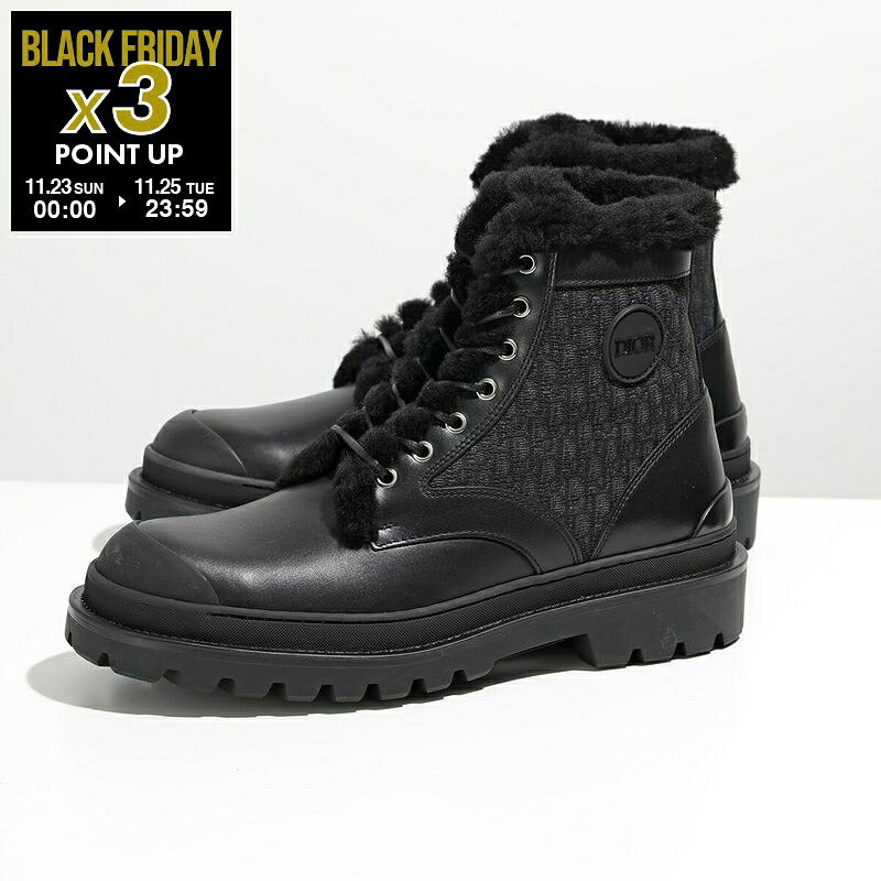 Dior ディオール アンクルブーツ 3BO257ZRP メンズ オブリークジャガード ロゴ レースアップ シアリング ボア ムートン シューズ 靴 969