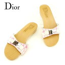 【ブラックフライデー30%OFFクーポン】ディオール Dior サンダル シューズ 靴 レディース ♯36ハーフ ロゴプレート ホワイト 白 ピンク シルバー ベージュ キャンバス×エナメル×ウッド 【ディオール】 T6935 【中古】 ブランド ハイブランド ヴィンテージ 送料無料