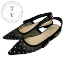 クリスチャンディオール CHRISTIAN DIOR JADIOR パンプス 靴 シューズ メッシュ スエード ブラック 黒 ゴールド フラットパンプス サンダル ドット スタッズ スリングバック
