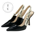 クリスチャンディオール CHRISTIAN DIOR JADIOR パンプス 靴 シューズ パテント ブラック ホワイト 黒 サンダル スリングバック ロゴ 刺繍
