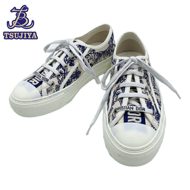 ◆値下げ!◆Dior ディオール Walk'n'Diorプラットフォームスニーカー トラ ホワイトネイビー レディース 新品同様【辻屋質店A3437】【中古】【質屋出品】