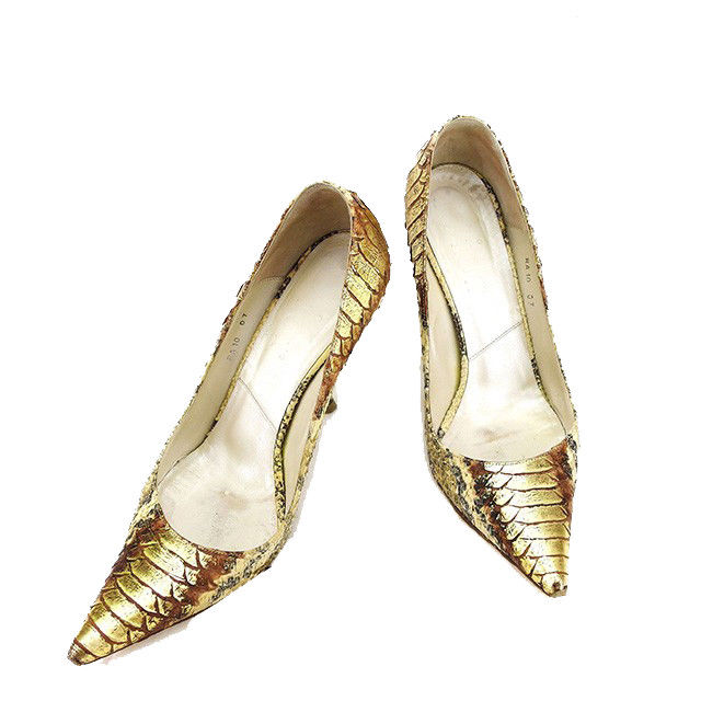 【ブラックフライデー30%OFFクーポン】ディオール Dior パンプス パイソン ♯36ハーフ ポインテッドトゥ ベージュ×ブラック×ゴールド系 レディース 中古 ブランド ハイブランド ヴィンテージ
