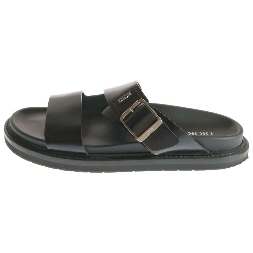 DIOR(ディオール) サイズ:42 AQUA SANDAL アクア ロゴプレート レザー ラバー フラット サンダル ブラック LS 02 22【中古】【程度B】【カラーブラック】【取扱店舗BRING福岡天神店】