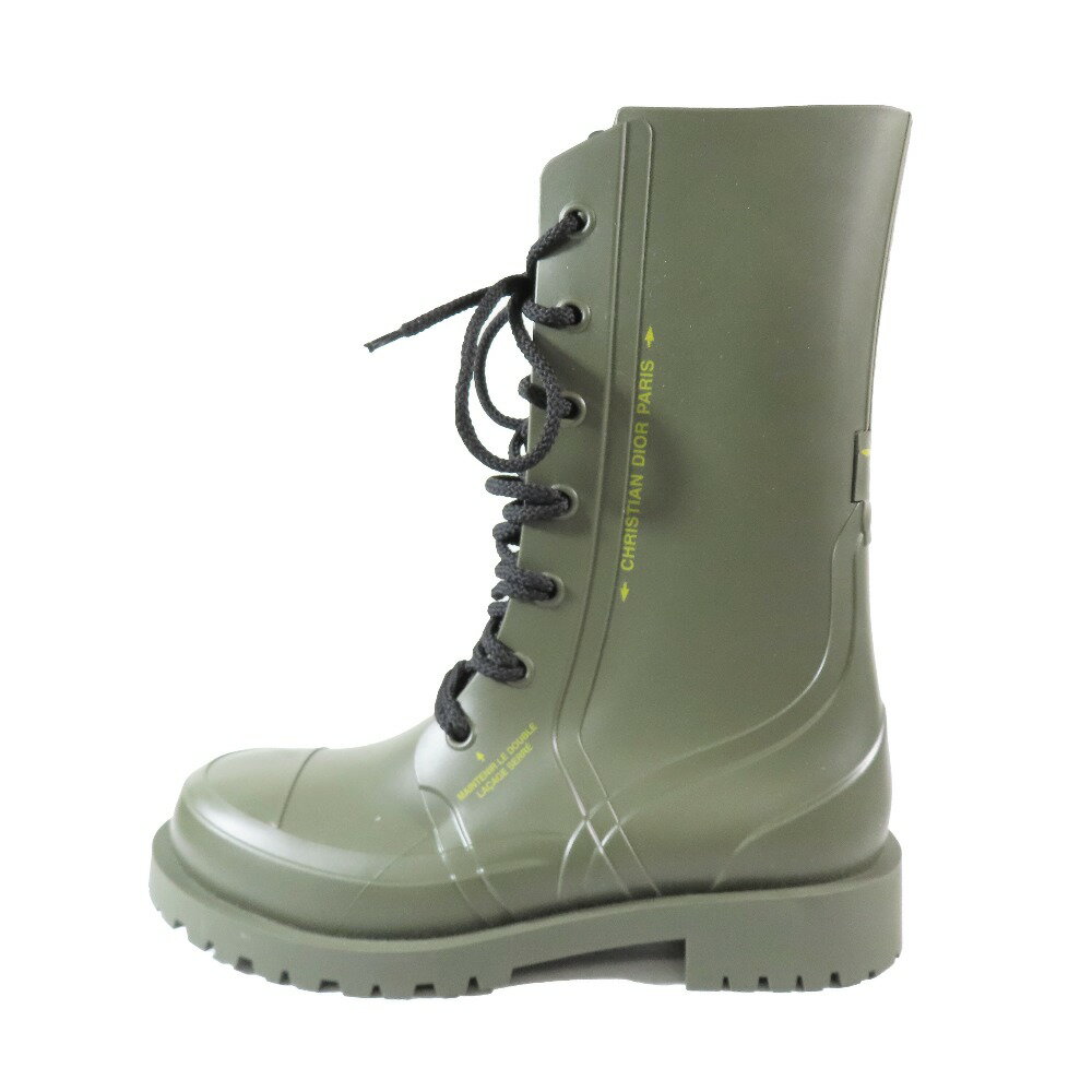 【中古】未使用 CHRISTIAN DIOR クリスチャンディオール レインブーツ 長靴 レースアップ ラバー CDロゴ カーキ 靴 シューズ 39/26cm レディース Luxs ブランド古着のリュクス