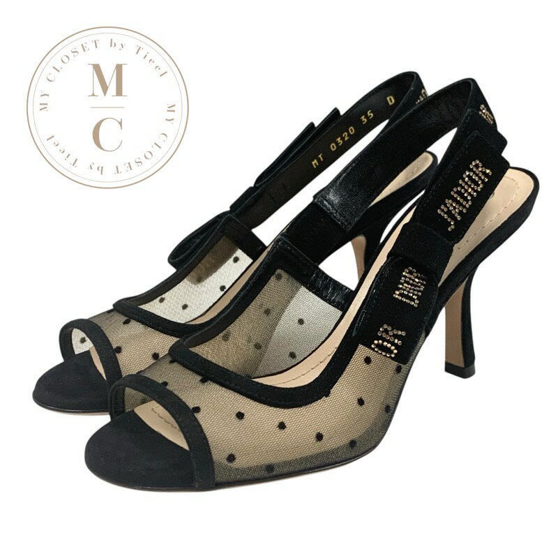 クリスチャンディオール CHRISTIAN DIOR JADIOR サンダル 靴 シューズ メッシュ スエード ブラック 黒 ラインストーン ドット スリングバック