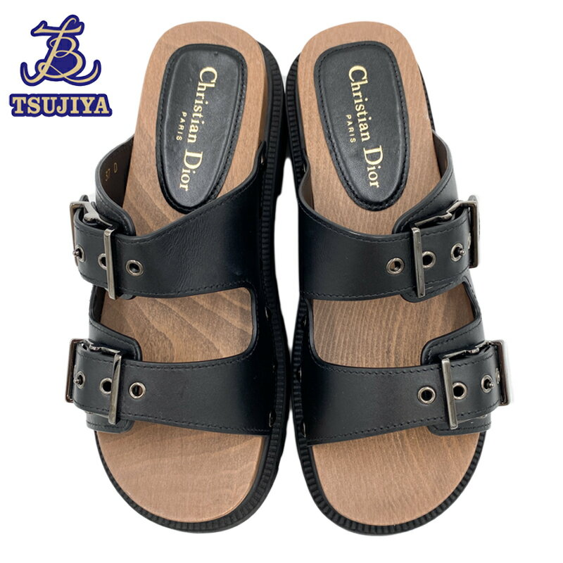 ◆値下げ!◆Dior ディオール レザー ウッド サンダル レディース ブラック 新品同様【辻屋質店A3439】【中古】【質屋出品】