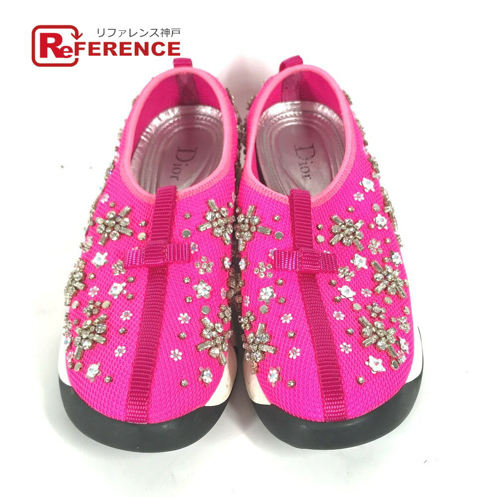 Dior ディオール ビジュー ラインストーン フラワー 花 靴 シューズ スニーカー メッシュ レディース ピンク 【中古】