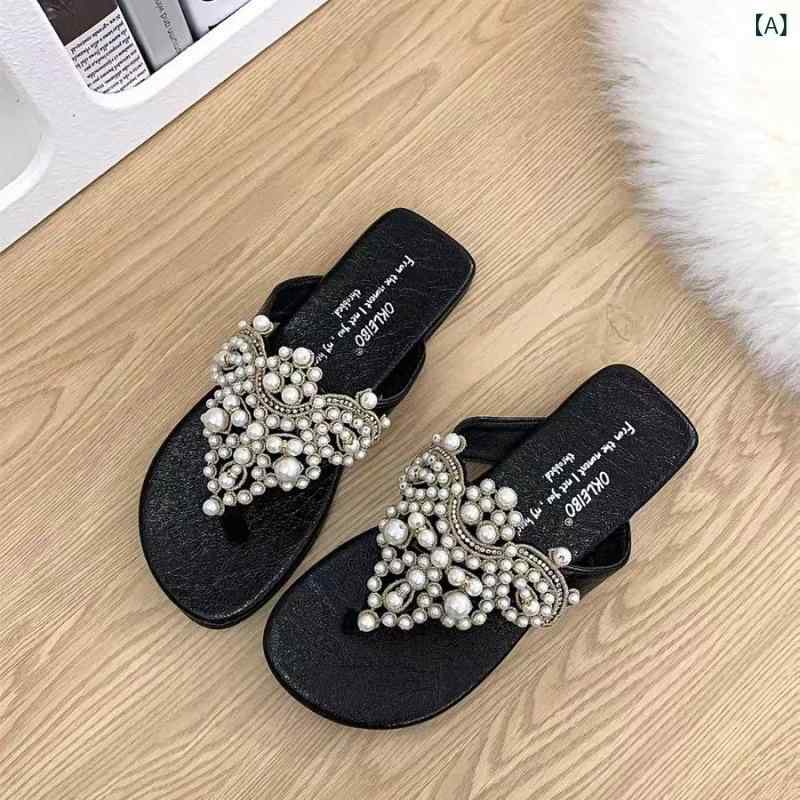 サンダル レディース 婦人靴 厚底 ボヘミアン 羊革 パール ラインストーン キラキラ 軽量 滑り止め 耐摩耗性 ブラック 銀色 金色