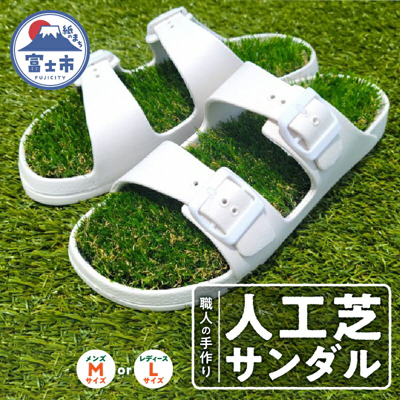 【ふるさと納税】 人工芝サンダル TURF SANDAL メンズ レディース ユニセックス 男女兼用 選べるサイズ M/L ホワイト 一足 職人手作り ハンドメイド 靴 くつ スリッパ エムズ 芝生 SDGs 再利用 端材 日用品 富士市 (1918) [sf062-001]